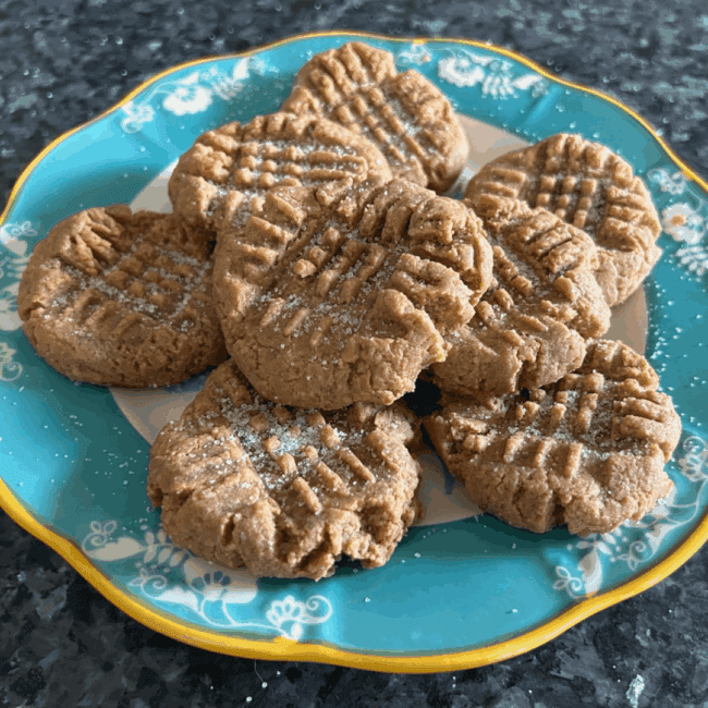 Whip up these easy low-carb peanut butter cookies with just five ingredients! Made with sugar-free peanut butter, monk fruit, and almond flour, they’re soft, chewy, and perfect for keto or diabetic-friendly baking.
