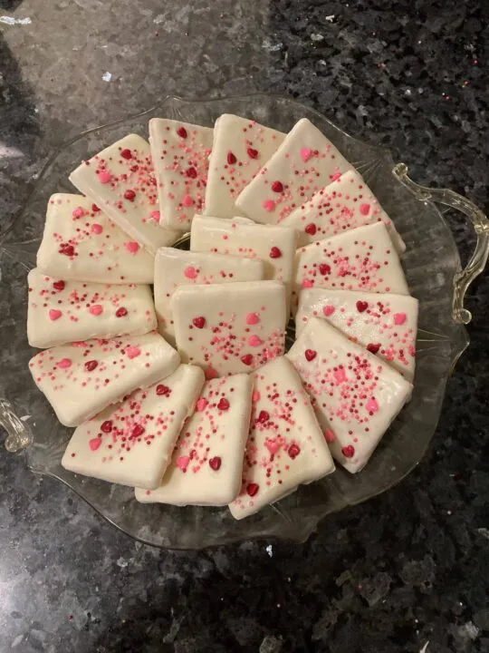 I also did a post about the process of covering graham crackers with chocolate. These are perfect for Valentine’s Day.
