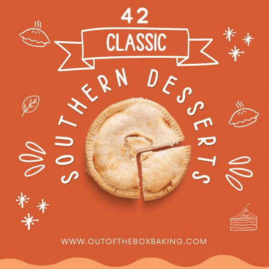 In this post you're going to find 42 sweet treats popular in the south! Whether it's cake, pie, cobbler, cookies, or bars, we've got you covered here at Out of the Box Baking. And best of all, we've got some fan favorites sure to please even the most discriminating southern palate!
