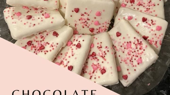 Such a simple and fun idea. Cover graham crackers in white chocolate then add sprinkles. This is a great idea for Christmas!