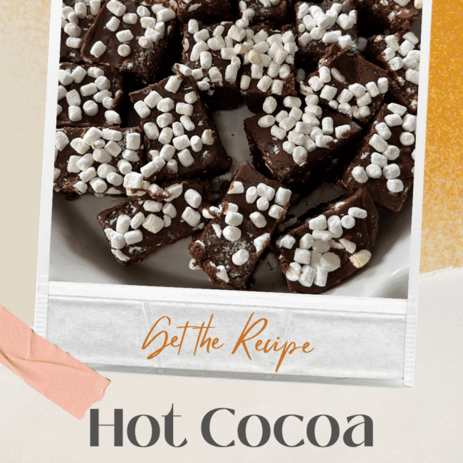 I highly recommend this simple fudge recipe. (No candy thermometer necessary!) It's so easy and holds up beautifully and definitely has that hot cocoa flavor.