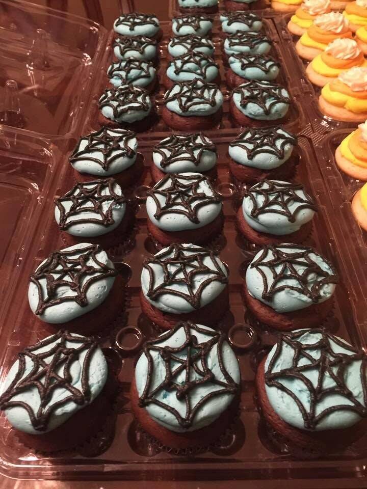 - 1 batch Dreamy buttercream, dyed pale blue (or bright red) and black for webbing