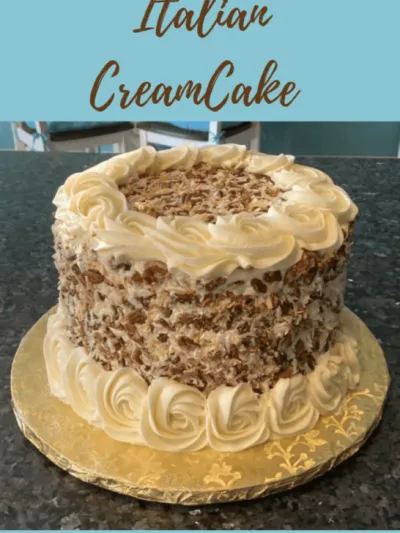 Italian Cream Cake: I’ve got the full recipe on my blog already but you can turn a box of yellow cake mix into an Italian cream cake by adding instant pudding, chopped pecans, and coconut. Frost with cream cheese frosting.