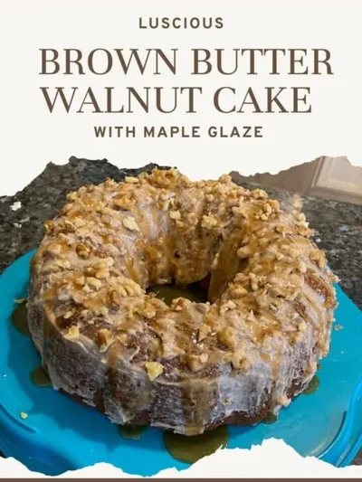 Brown Butter Walnut Cake: Turn your box of cake mix into a rich brown butter walnut cake by adding browned butter, chopped (toasted) walnuts, and adding a delicious glaze. This rich yellow cake, loaded with delicious ingredients will make you swoon.