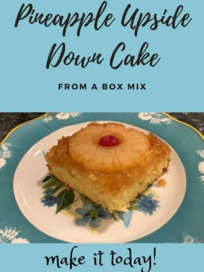 Pineapple Upside-Down Cake: This classic favorite begins with a box of yellow cake mix and I’d so easy to make. It’s so easy to turn a yellow cake mix into this easy Pineapple Upside Down Cake! One can of sliced pineapple rings, 1 cup of brown sugar, some maraschino cherries, and the usual ingredients for a boxed cake mix. . .and you’re good to go. Talk about an easy dessert!