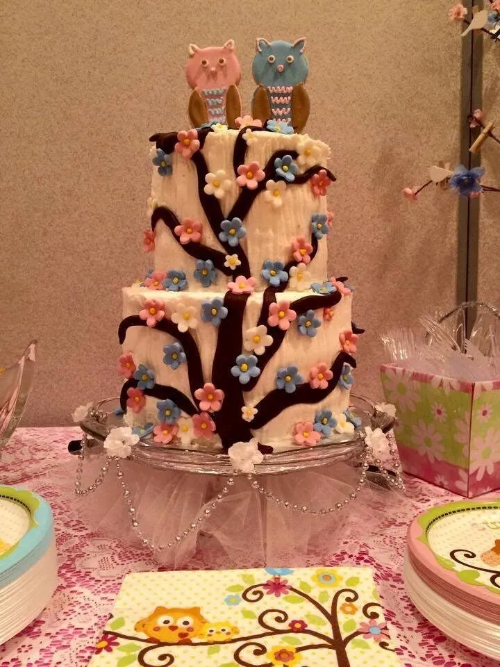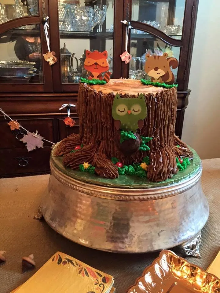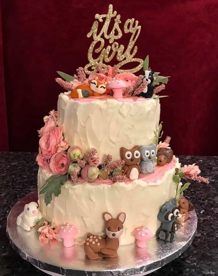 - Woodland Creatures: Create an enchanting woodland-themed cake featuring adorable forest critters like owls, foxes, rabbits, and deer. Add rustic touches like tree bark, moss, and acorns for a whimsical forest vibe. This theme is great for a gender-neutral baby shower.