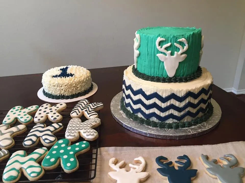 Here are some of my personal favorites. Check out those baby footprints made out of sugar cookies! Cute and delicious! And check out the adorable cake topper on that Little Man cake! (I made that one to celebrate the arrival of my youngest grandson.)