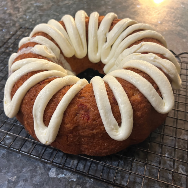 If you’re looking for a rich orange cake filled with bursts of cherries, this is the recipe for you. Best of all, the is a simple cake that starts with a box of cake mix!