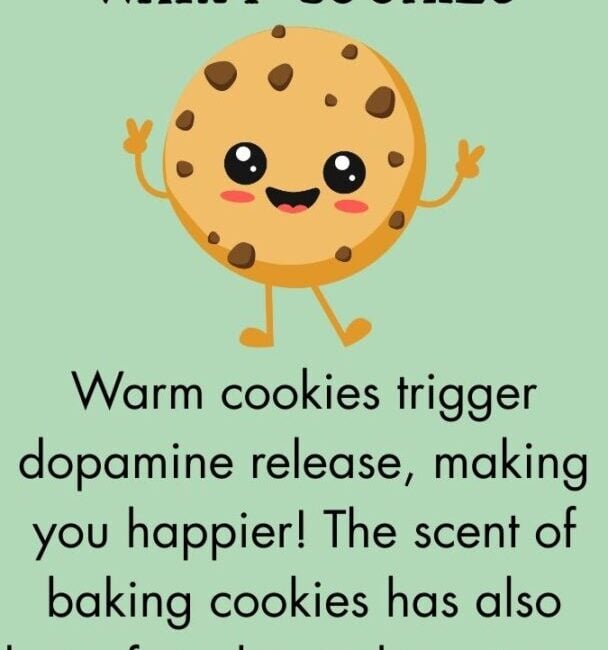 👃 The Smell of Cookies Makes Us Happy – The scent of fresh-baked cookies triggers dopamine release in the brain, which makes us feel comforted and happy. No wonder we associate cookies with warm memories!