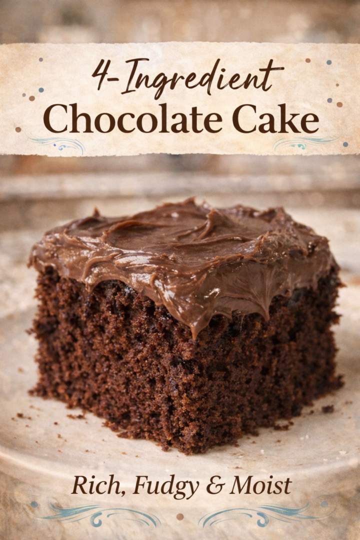 Make a rich, fudgy chocolate cake with just 4 ingredients! This simple, fuss-free dessert turns pantry staples into a crowd-pleasing treat—perfect for birthdays, weeknight sweets, or when you need an easy chocolate cake fast.
