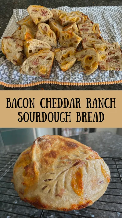 Packed with crispy bacon, sharp cheddar, and ranch seasoning, this Bacon Cheddar Ranch Sourdough Bread is the perfect savory twist on a classic artisan loaf.