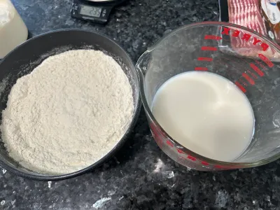 Add 500 grams of flour/ranch mixture and 10 grams of salt. (If your ranch powder is salty you can cut back to 5 grams of salt.)