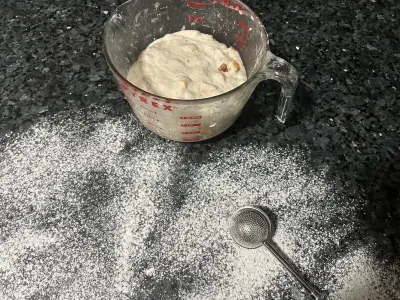 Check your starter to make sure it’s ready to go. Drop a pinch in some water. If it floats, you’re good to go!