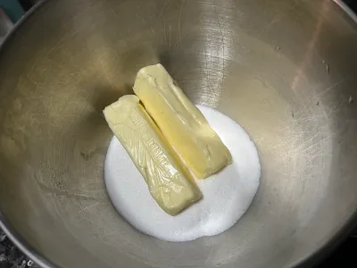 - Place the room temperature butter and sugar in a bowl or the bowl of a stand mixer.