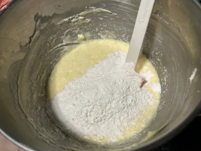 - Whisk together your dry ingredients (flour, salt, baking powder, baking soda) and set aside.