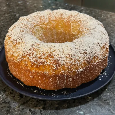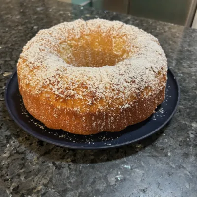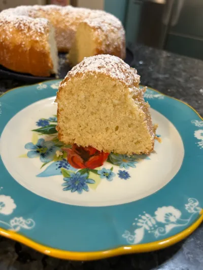 The only problem I ran into was my old bundt pan cause the cake to stick, so I lost a little bit of the edges. But I managed to cover that up with powdered sugar, which just added more flavor. The crusty edges, the soft interior, the sweetness with the finest bit of tang. . .it was all rather lovely. I'm so very glad I gave this recipe a try!