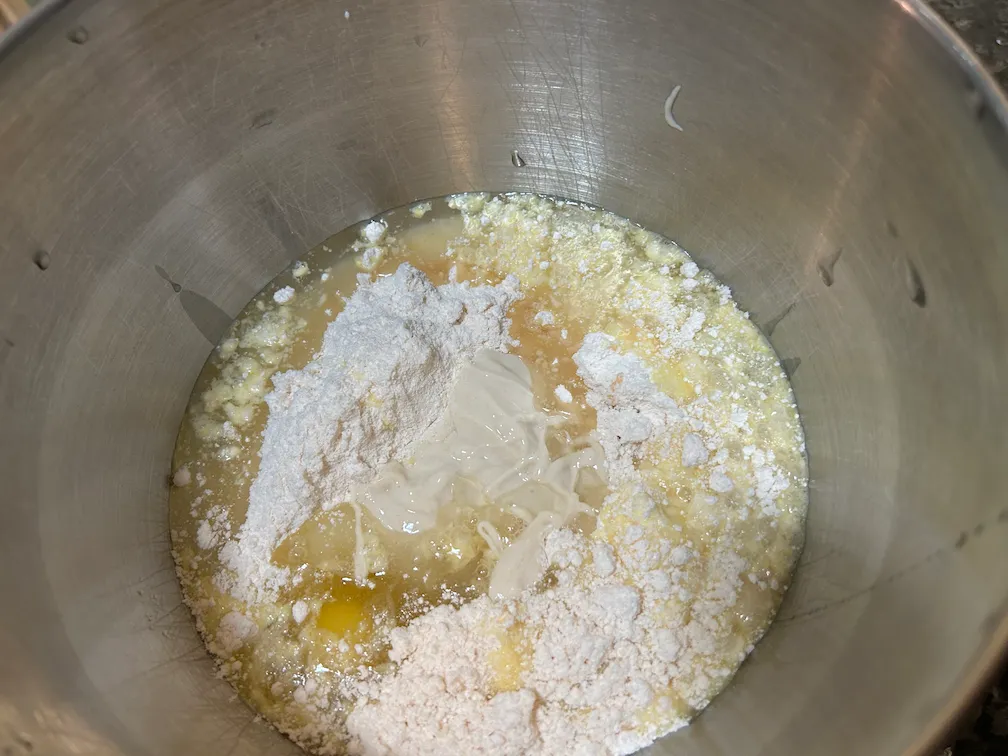 - Add starter and milk.