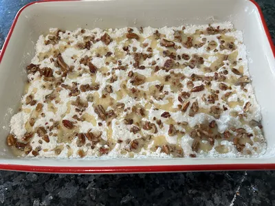 Scatter the chopped pecans over the top.