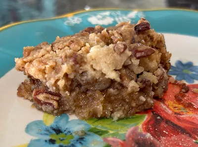 Y’all, this is over-the-top delicious! Beyond delicious, even. The crunchy pecans. The sweet gooey base. The cobbler-like texture. It’s sheer perfection. I wish I’d made this at a different point in my life-story because I’m currently on a diet and couldn’t have more than a bite or two. And just thinking about pairing it with a big scoop of butter pecan ice cream is making me delicious right now! You’re going to love this one, I promise!