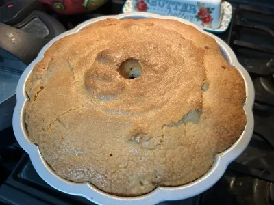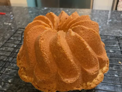Over-filling the pan: I’ll confess, I was stressed out over the amount of batter I added to the pan. I should have used a tube pan, perhaps? I’m not sure. But I wanted to use my pretty bundt pan.