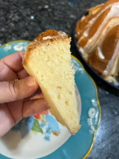 - Pound cake, especially one made with sour cream, butter, and shortening, should have a tight, fine crumb that looks slightly dense and buttery. The interior of this pound cake will never look “dry” like a layer cake — it’s supposed to glisten just a bit. What you’re seeing is a properly hydrated, rich pound cake texture. That little bit of sheen is exactly what people are after in a great pound cake — it’s buttery, not raw.
