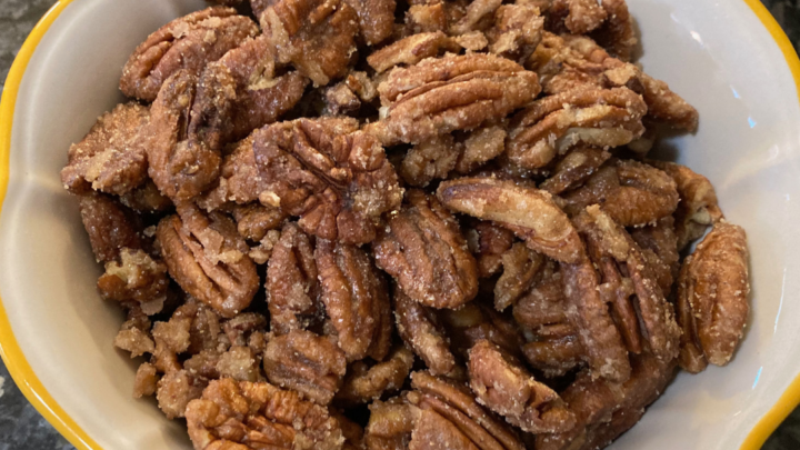 These sweet, crunchy candied pecans are made with just a few simple ingredients and bake up in minutes. Perfect for holiday gifting, Christmas snack mixes, or topping pies and salads, they’re an easy treat that adds festive flavor without the fuss.