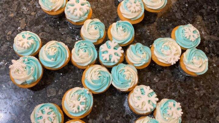 These pull-apart snowflake cupcakes are made from simple cake mix cupcakes arranged into a beautiful snowflake shape. Easy to decorate with white frosting and sprinkles, they’re a festive Christmas dessert that looks impressive but is simple enough for any beginner baker.