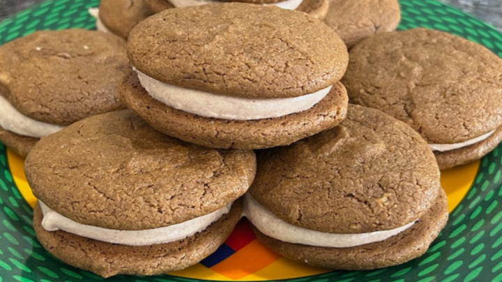 These soft, spiced whoopie pies start with a simple cake mix and come together in no time. Filled with sweet cream and packed with gingerbread flavor, they’re an easy holiday cookie that looks impressive on any Christmas dessert tray.