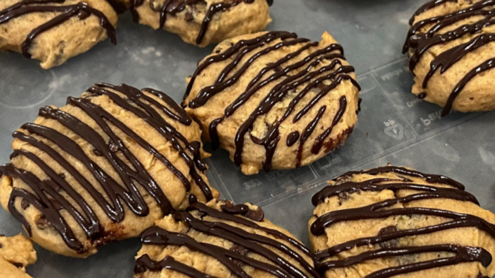 Bake up a batch of soft pumpkin chocolate chip cookies with cozy fall spices and rich chocolate chips. These melt-in-your-mouth cookies are topped with an optional chocolate ganache for an irresistible autumn treat.