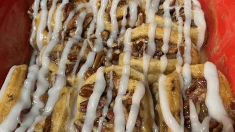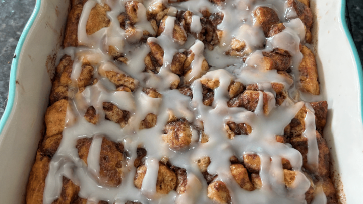 This recipe is so simple, you will almost feel like you’re cheating! It starts with two cans of refrigerated cinnamon rolls but it definitely doesn’t end there!