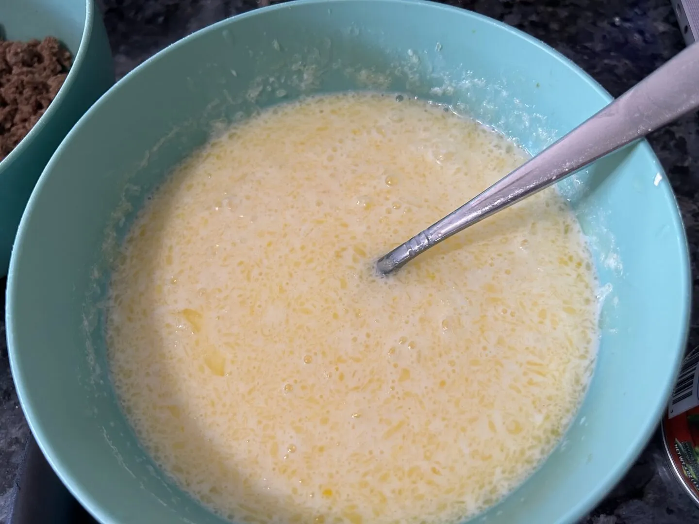 - Mix wet ingredients: In a separate bowl, whisk buttermilk, eggs, and melted butter until smooth.