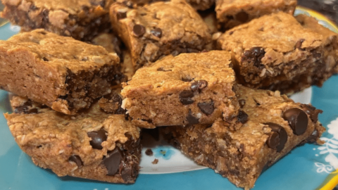 Healthy Peanut Butter Oatmeal Bars with Chocolate Chips
