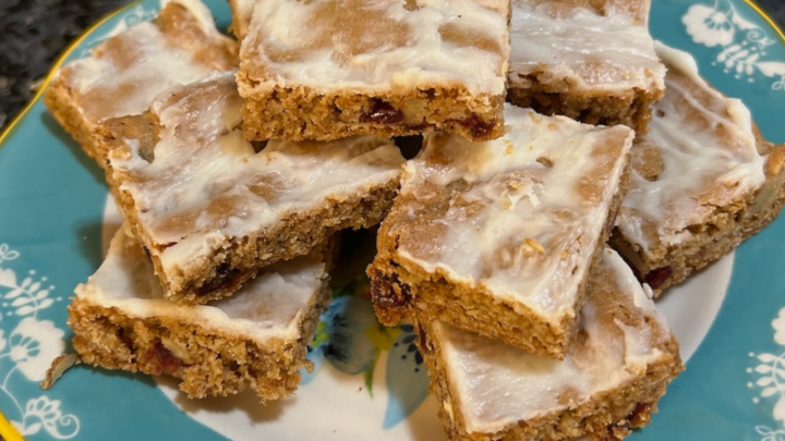 Sometimes you’re just in the mood for something sweet, even for breakfast. And if you love the ease of a bar, then this recipe will satisfy not just your sweet tooth, but your need to grab-and-go.