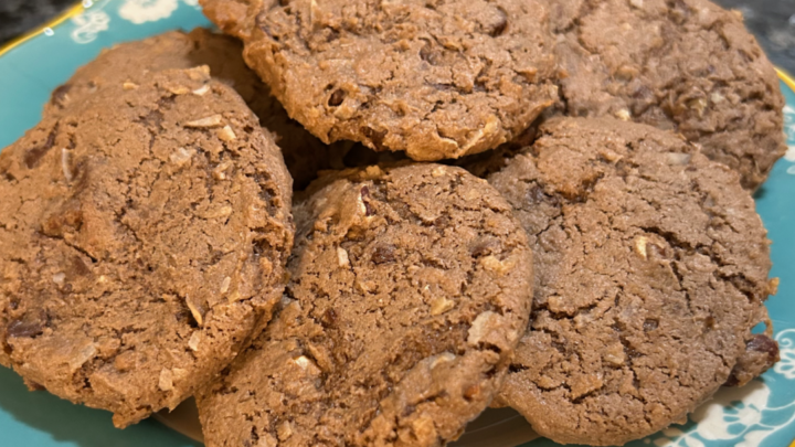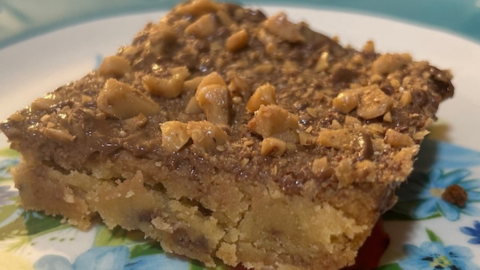 If you love German Chocolate cake but want the ease of a tender, flaky cookie bar, this is the recipe for you! The cookie crust has a light chocolate flavor and the rich gooey filling is loaded with coconut, pecans, and chocolate chips.
