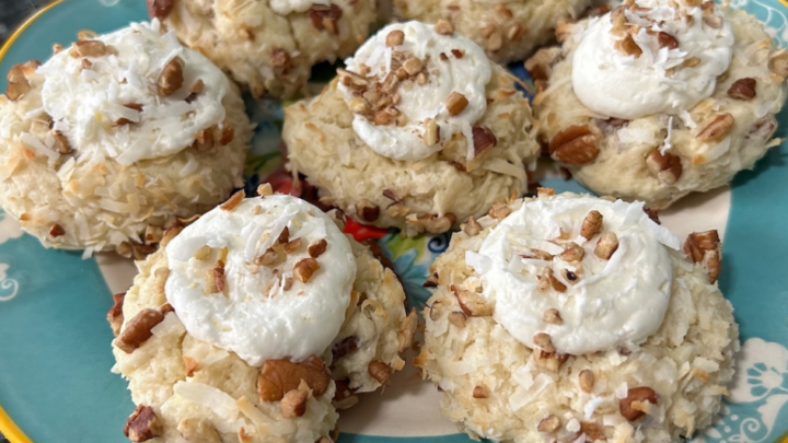 If you love German Chocolate cake but want it in cookie form, do I have a treat for you! You’ll love these sweeter-than-coconut sandwich cookies, stuffed with coconut pecan frosting! Talk about a lovely addition to your Christmas cookie lineup!