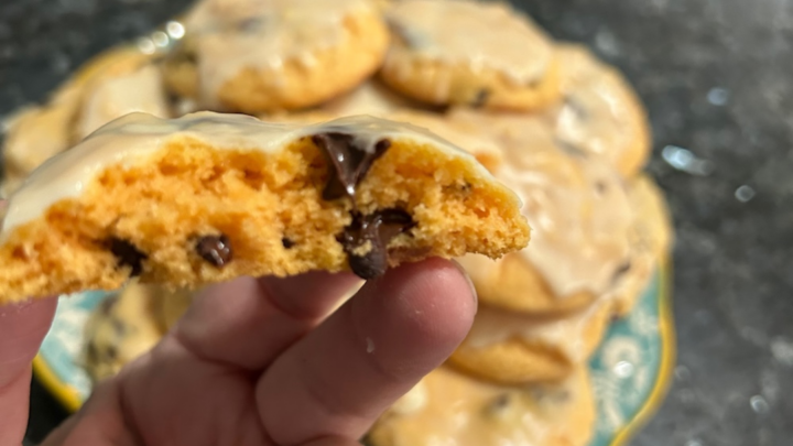 Bake up a batch of soft pumpkin chocolate chip cookies with cozy fall spices and rich chocolate chips. These melt-in-your-mouth cookies are topped with an optional chocolate ganache for an irresistible autumn treat.