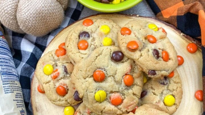 Candy-studded cookies loaded with Reese’s Pieces for the ultimate Halloween candy-inspired treat.