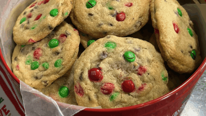 These bakery-style Christmas M&M cookies are thick, soft, and loaded with colorful red and green candies. Each bite is buttery, chewy, and packed with chocolate—perfect for cookie swaps, classroom treats, and holiday dessert trays.