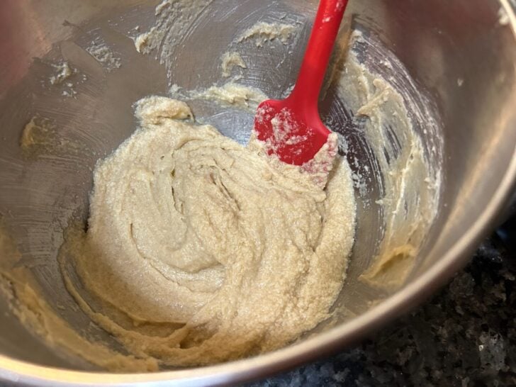 Gradually add the flour and mix just until combined. The dough will be thick and soft.