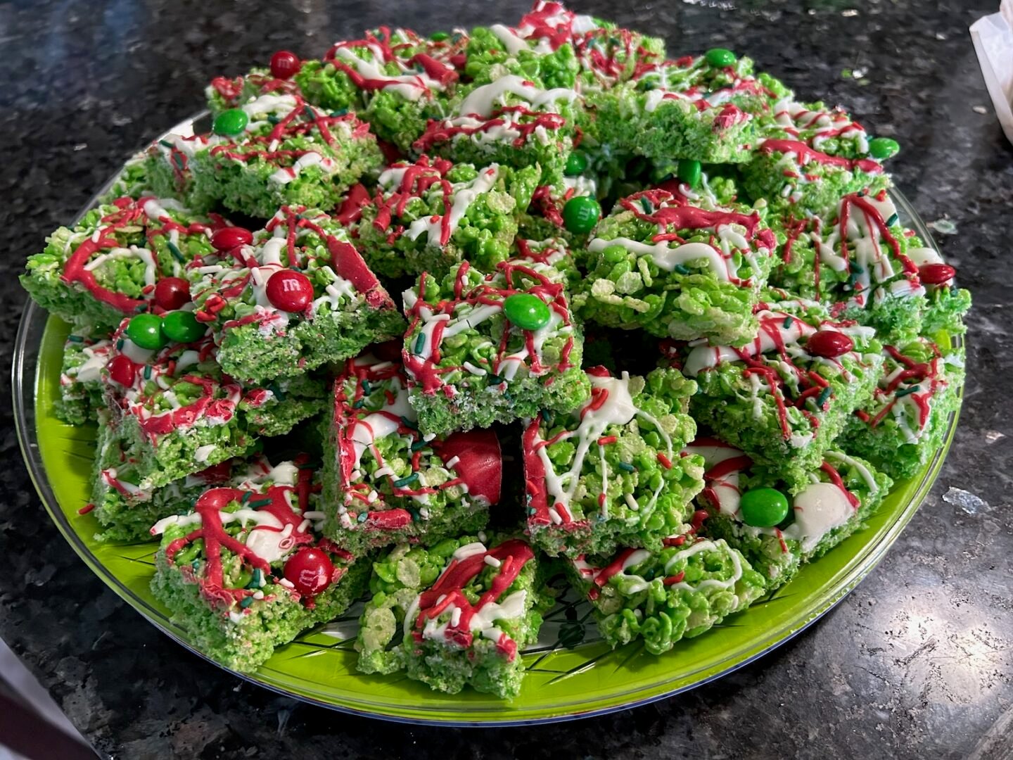 💚 Grinch Rice Krispie Treats (with Christmas M&Ms)