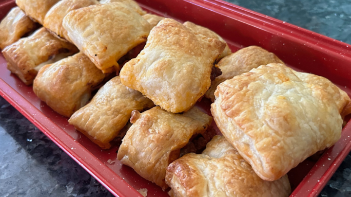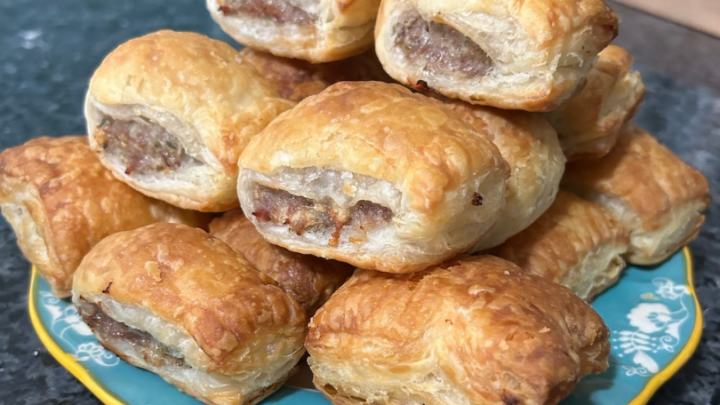 Flaky, golden puff pastry wrapped around savory sausage… what could be better for a party? These Puff Pastry Sausage Rolls are cozy, comforting, and unbelievably easy to make — yet they feel totally gourmet. The pastry bakes up buttery and crisp while the sausage inside stays juicy and flavorful. Slice them into bite-size pieces for the appetizer tray and watch them vanish. They’re always one of the first things to go!