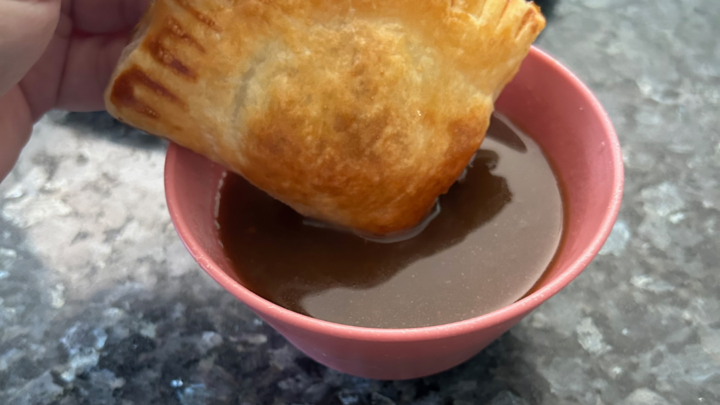 These French Dip Sliders take everything you love about the classic sandwich and wrap it in buttery, flaky puff pastry. Tender roast beef and melty cheese are baked inside golden pastry squares, then served with warm au jus for dipping. They feel totally upscale but are secretly so simple — the perfect bite-size party appetizer for New Year’s gatherings or game day snacking. One dip and your guests will be hooked!