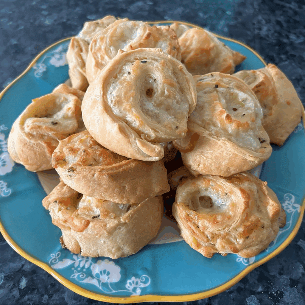 These Herbed Mozzarella Crescent Pinwheels are as beautiful as they are delicious! Flaky dough is rolled up with melty mozzarella and a sprinkle of Italian herbs, then baked until golden and bubbly. They’re light, cheesy, and wonderfully fragrant — the kind of appetizer guests can’t resist grabbing as they pass by. Serve them straight from the oven for New Year’s Eve or New Year’s Day and watch everyone swoon over that warm, savory goodness!