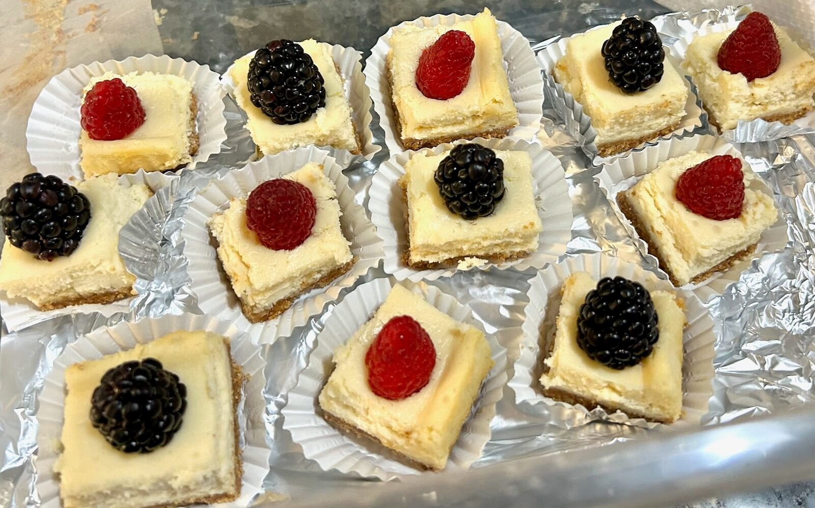 But. . .I knew I wanted one thing, in particular. Cheesecake bites. Teensy-tiny ones with berries on top.