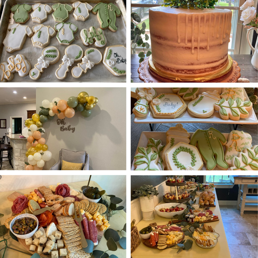 Here are some of my personal favorites. Check out those baby footprints made out of sugar cookies! Cute and delicious! And check out the adorable cake topper on that Little Man cake! (I made that one to celebrate the arrival of my youngest grandson.)