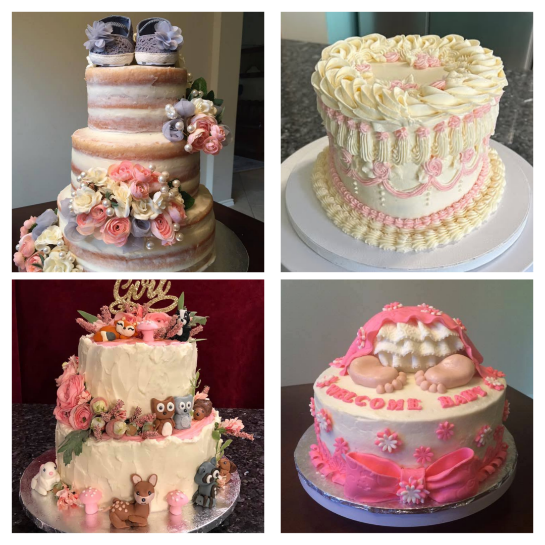Soft pastels, florals, delicate piping, and timeless baby shower designs.
