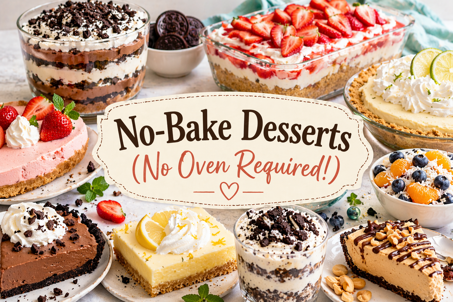 These recipes are quick, simple, and often involve layering or chilling rather than baking.