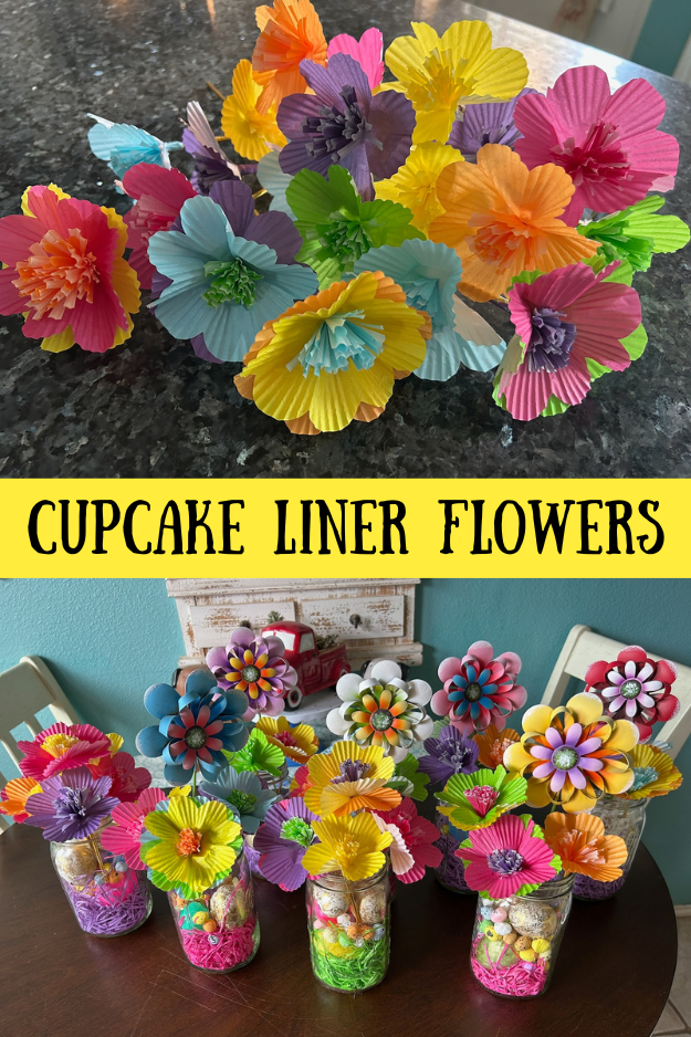 Learn how to make paper flowers from cupcake liners with this easy DIY tutorial! These budget-friendly centerpieces are perfect for Easter parties, kids’ events, and holiday decor.