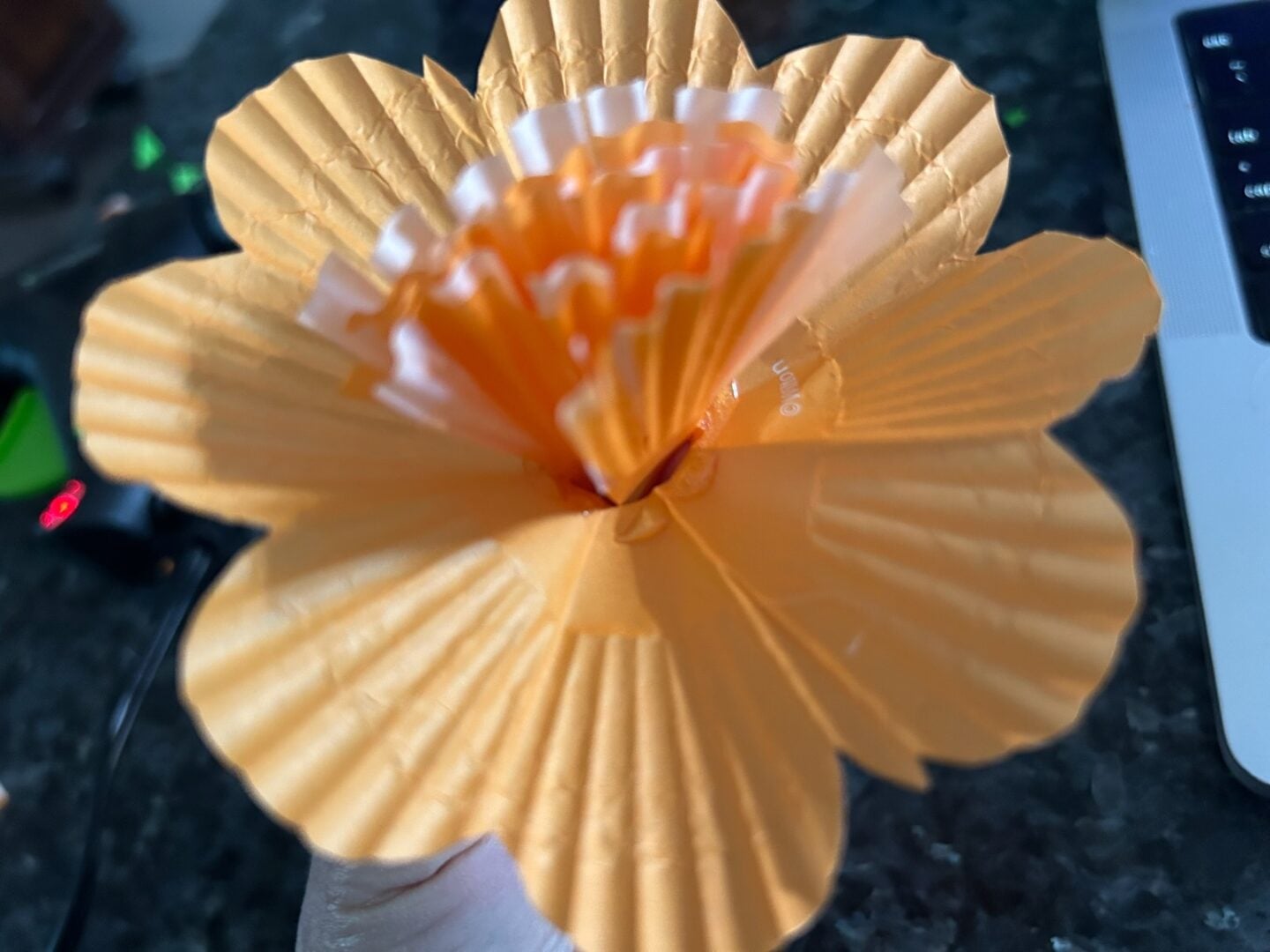 Gently pull the layers upward and fluff them to create a full, blooming flower shape.