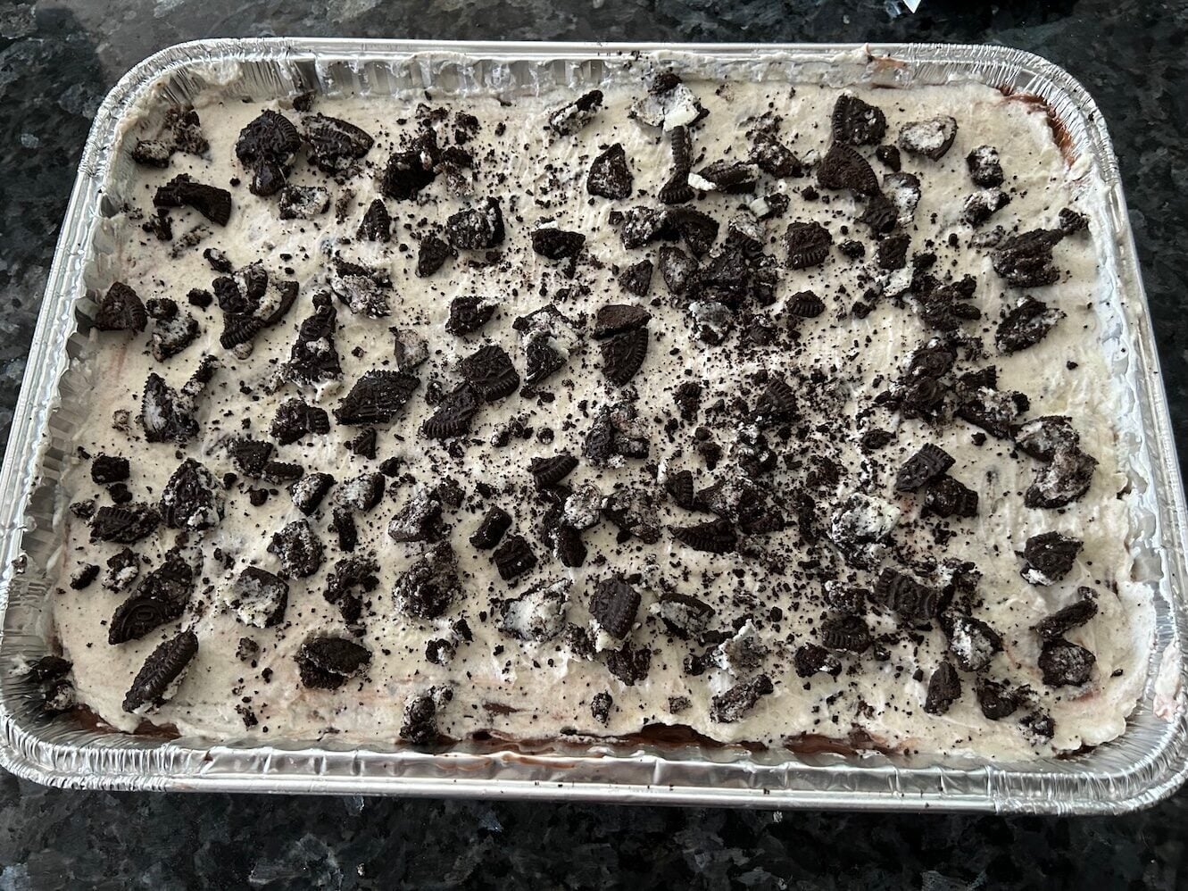 A rich and creamy layered dessert packed with Oreo goodness.